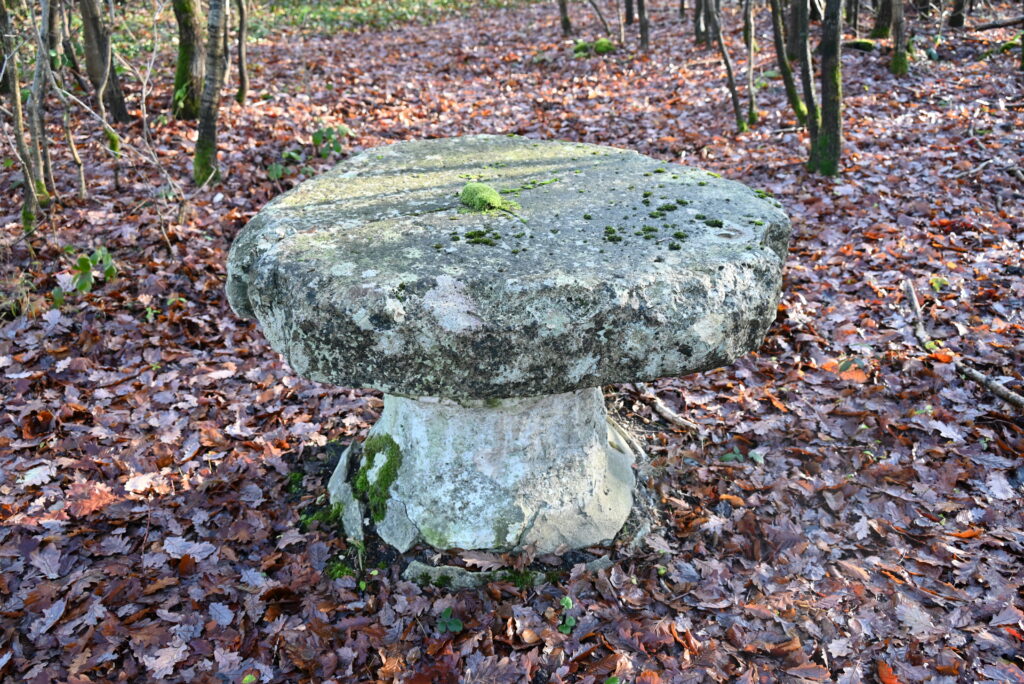 La deuxième aussi, Place Royale, à côté d’un petit abri. Il existe un article du blog de Tilia qui en parle: Petits mystères forestiers. Elle a même un petit nom: La Table Royale.