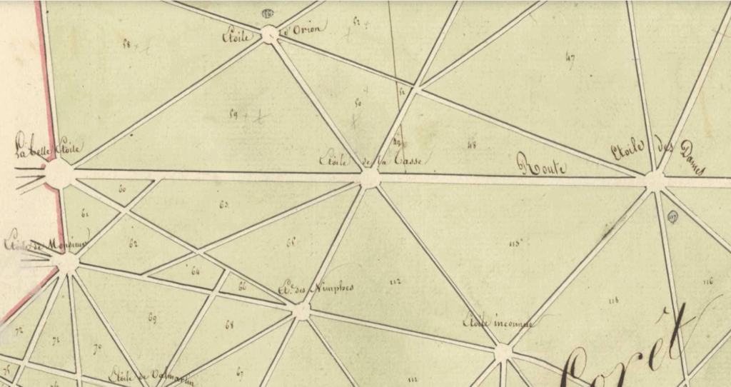 Cette Étoile de la Tasse n’était pas sur les cartes, je l’ai retrouvée dans les plans cadastraux des archives des Yvelines. Malheureusement, elle est aujourd’hui transpercée en son centre par l’autoroute A13.