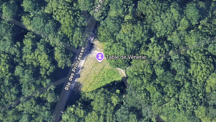 Je l’ai trouvée en arpentant la forêt sur Google Maps, là où se trouve un point nommé Table de Vénerie.